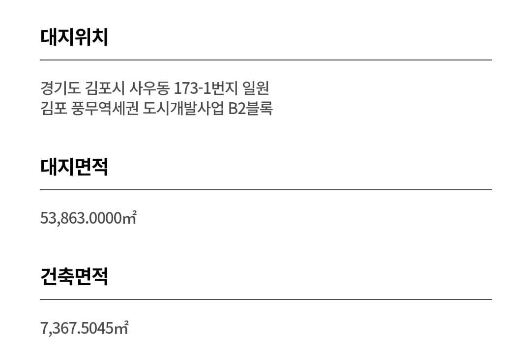 풍무역세권 한양수자인은 김포 풍무역세권 도시개발사업 B1,B2블록에 위치하며, 지하 3층~지상 최고 29층, 1710가구 규모로 조성됩니다. 실수요자 선호도 높은 전용면적 59~84㎡의 중소형 평면으로 구성된 점이 특징입니다.